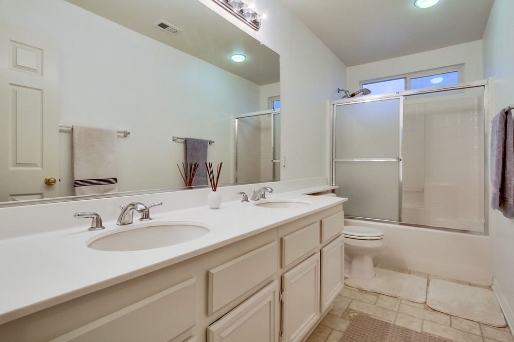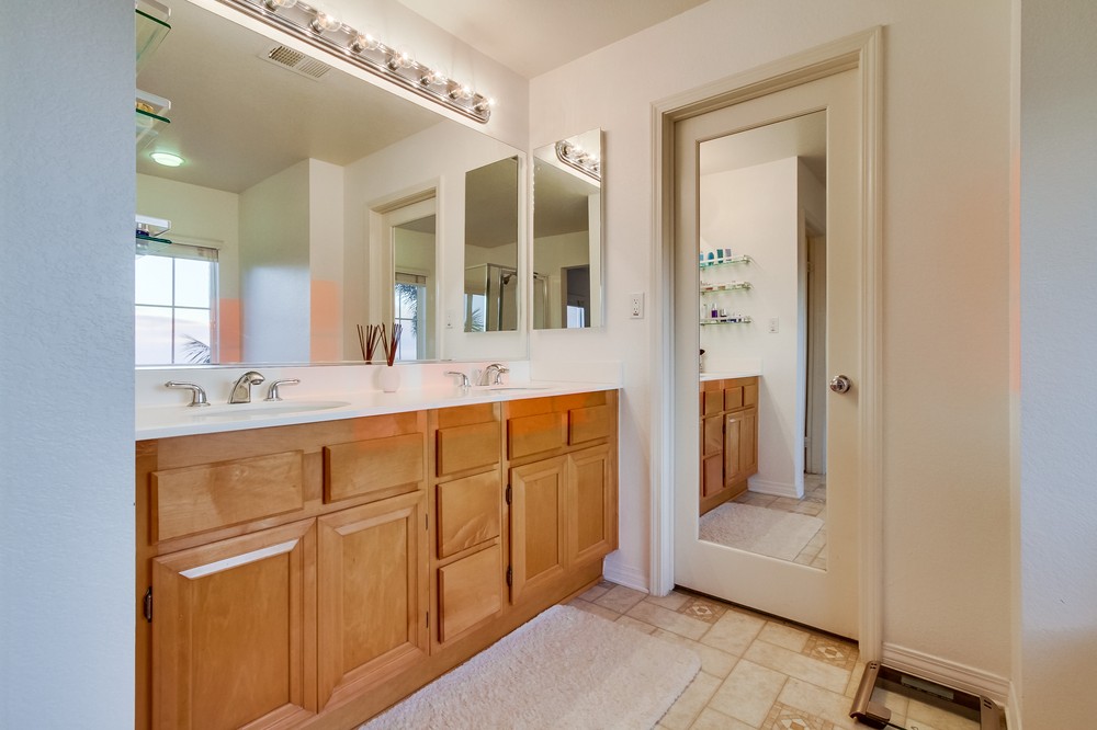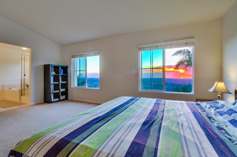 Views! Views! Spectacular Sunset, City, and Ocean Views. This Upgraded Scripps Ranch home is move-in ready with a functional, open floor plan. An ideal location on a cul-de-sac street, near shopping, easy freeway access, and minutes to Lake Miramar. Fantastic curb appeal -- a turret entry, freshly painted exterior, stamped concrete walkway, and a low maintenance front yard with mature landscaping.Enter the home and immediately notice beautiful maple hardwood floors, freshly painted walls, and upgraded shutters in the living room. Down the hallway your attention is drawn to the incredible views and large grassy back yard. Family room and kitchen great room area is perfect for entertaining friends and family. Plenty of cabinet space in the kitchen, upgraded granite counter tops, stainless steel appliances, a breakfast nook, and tile floors. For guests, a convenient downstairs bedroom and a full bathroom. Three bedrooms and two baths upstairs, plus a spacious loft area and convenient upstairs laundry room. Large master bedroom, with double door entry, has two walk-in closets and vaulted ceilings. Enjoy the breath-taking views from the master bedroom/bathroom, family room, kitchen, downstairs bedroom, and back yard. Additional upgrades include a gas fireplace, air conditioning, upgraded designer windows in stairway, security system, maple cabinets, front door intercom/camera system, low E double pane glass windows, and a newer water heater. Plenty of storage throughout the home, and an attached two-car garage with automatic garage door opener. Buyer and Buyer's Agent to verify all before removing contingencies. Please limit picture taking to those persons preparing appraisal or inspection reports.