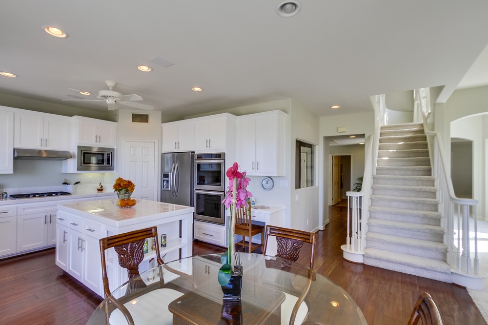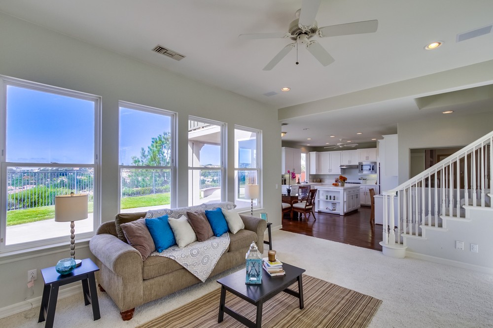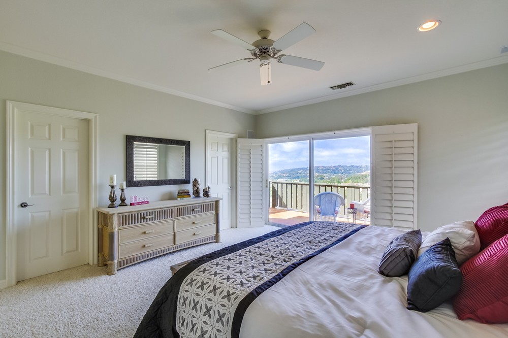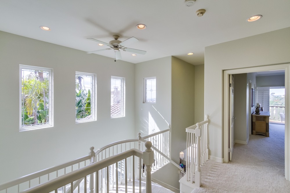Premier Ocean View Home in Torrey Hills!!! Wake up and enjoy the breathtaking ocean view while sitting in bed. Perfect cul-de-sac location on a large, pie-shaped lot. Take in the panoramic views from the master bedroom and balcony, backyard, family room, and kitchen. Ocean breezes keep the home pleasantly cool in the summer, and every room is flooded with natural light. The kitchen and master bathroom have been updated with new cabinet doors, drawers, hardware, and gliders. Upgrades include hardwood floors in kitchen and hallway, newer stainless steel kitchen appliances (dishwasher, microwave, refrigerator and double ovens), new tile floors in all bathrooms, high end decorative windows and wood shutters, central AC, and crown molding. Distinctive dual staircases, multiple ceiling fans, and large upstairs laundry with an abundance of cabinets and a utility sink. Super functional layout, open and inviting, and move-in ready. Full bedroom and full bathroom downstairs. The private, spacious yard is low maintenance, with multiple patio/courtyard areas, and includes a large, below ground Jacuzzi/spa and an inviting fire pit. Newer exterior paint, newly painted fences and double-entry doors. 4 bedrooms, 1 bonus room, and three full baths. Downstairs bedroom is currently set up as an office. Once you visit this home you will not want to leave. If you’ve been searching for an ocean view home this is a must see. Located in Torrey Point neighborhood of Torrey Hills, near UCSD and many hi-tech companies, easy freeway access, top ranked schools, minutes to the beach, hiking trails, and near shopping/entertainment. Buyer and Buyer’s Agent to verify all before removing contingencies