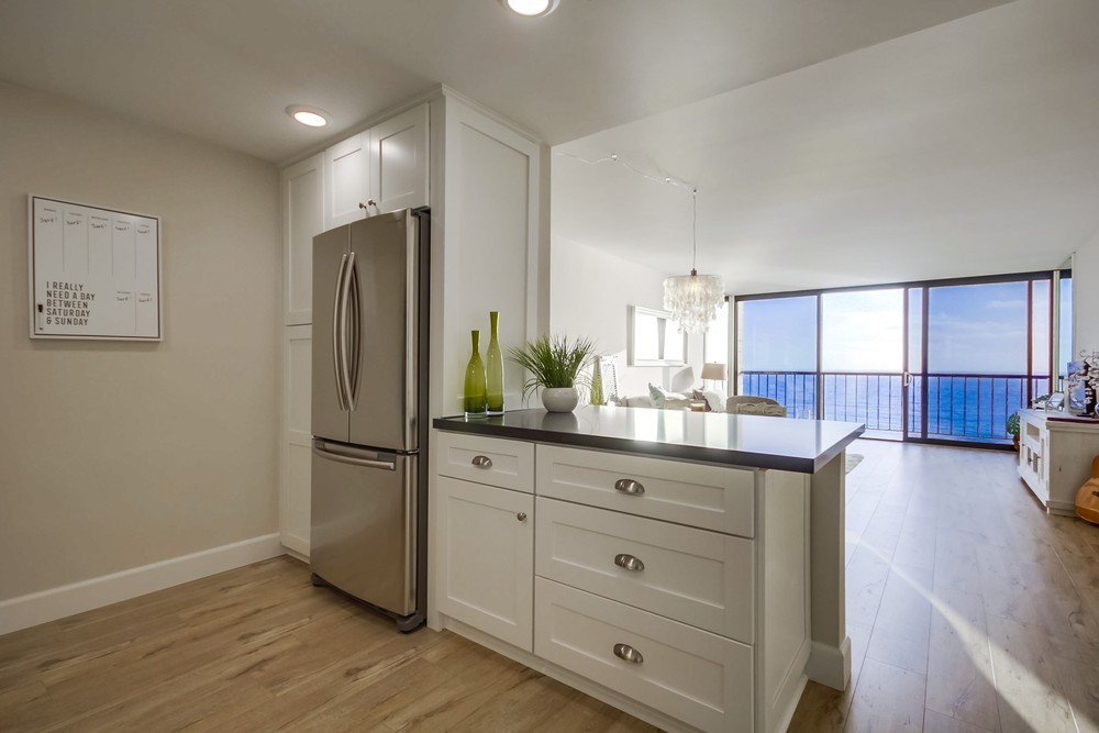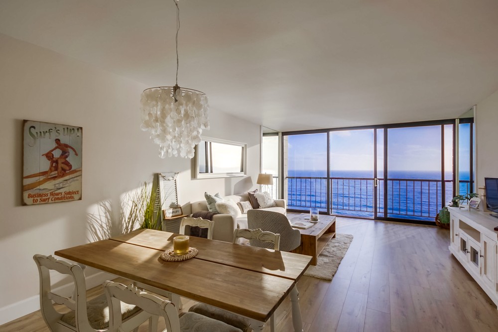 How often do you get to watch the surfers dancing on waves and vibrant colored sunsets through the floor-to-ceiling sliders/windows in the comfort of your own living room! Located on the 10th floor and just underwent a complete "coastal-modern" remodel. Capri by the Sea is an ocean front resort-style complex offering: large 360 degree view roof deck, gas BBQ’s, secure and private pool & spa, sauna, lobby, lounge, and 24 hour security. Coastal living at its finest! Short term rentals allowed!