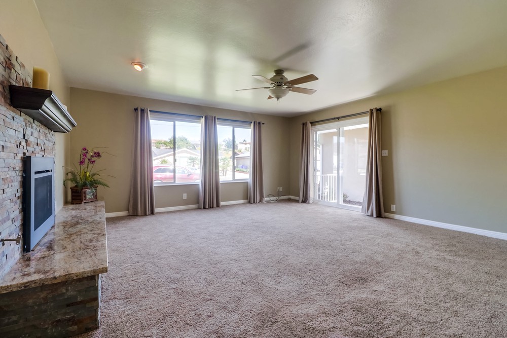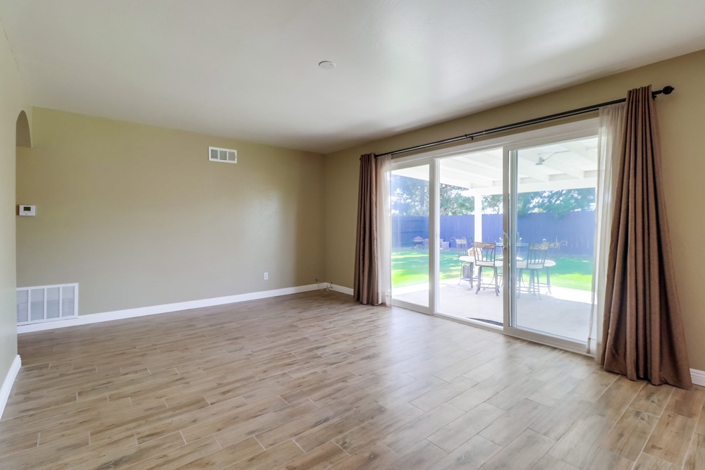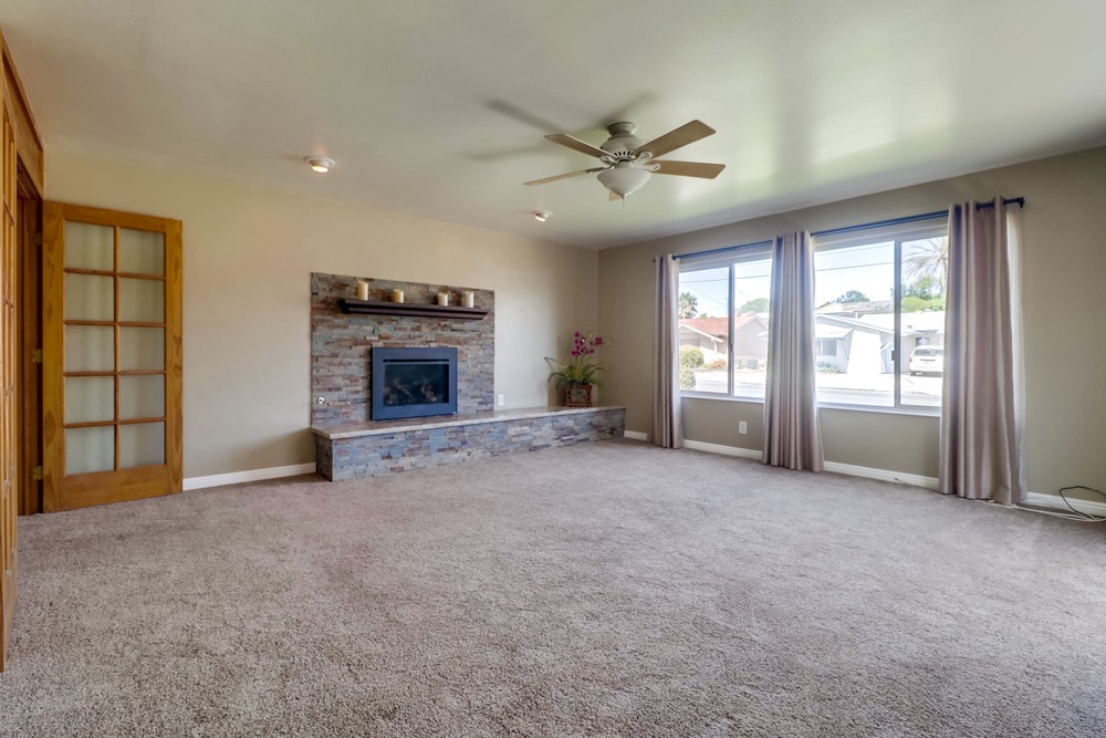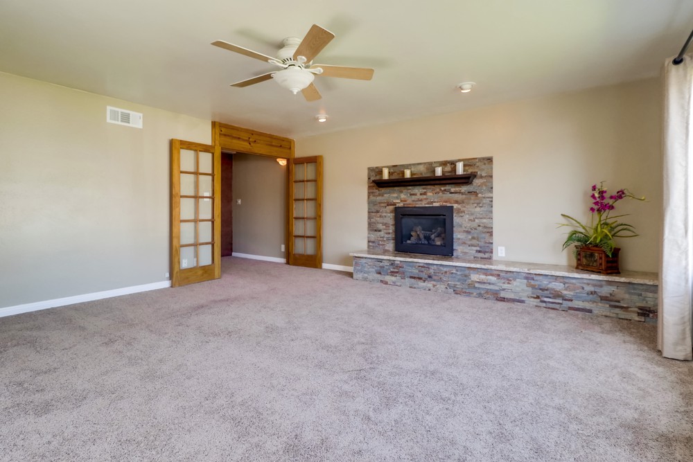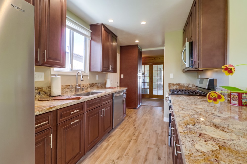 Fabulous single level home is gorgeously remodeled & upgraded! Magnificent eat-in kitchen features beautiful wood cabinets, S.S appliances, granite counter tops & gas range, & opens up to the lovely family room. Spacious living room boasts gorgeous stone fireplace w/elegant mantel, French doors & large picture window. Both bathrooms are stunningly remodeled. This home also features newer dual pane windows, AC, indoor laundry, & huge yard w/ covered patio!
